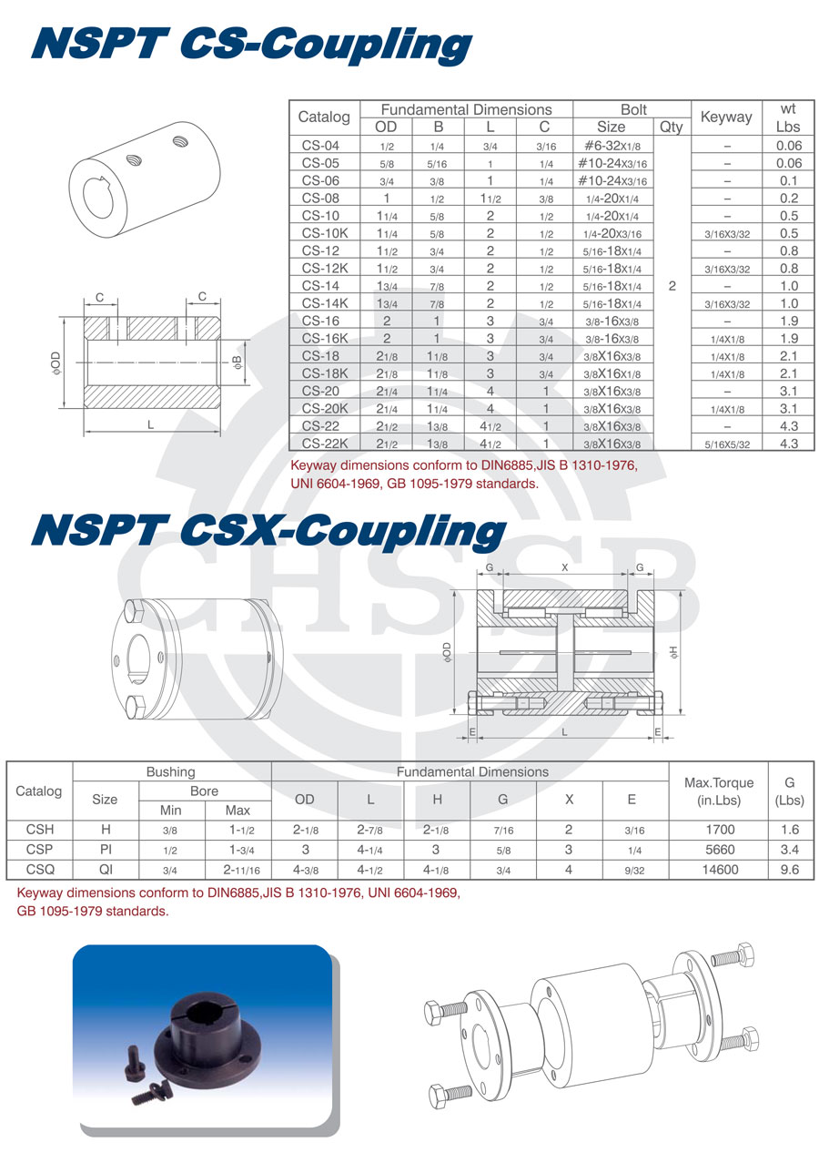 產(chǎn)品范圍: 美標(biāo)/歐標(biāo):(CSH/CSP/CSQ) 英制尺寸產(chǎn)品(適用于美標(biāo)市場(chǎng)) 公制尺寸產(chǎn)品(適用于歐標(biāo)市場(chǎng)) CSX型聯(lián)軸器 CSH型聯(lián)軸器 CSP型聯(lián)軸器 CSQ型聯(lián)軸器