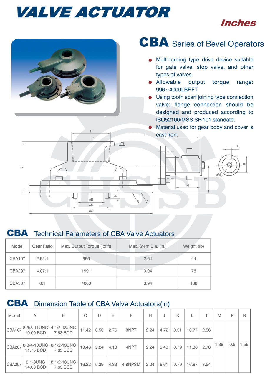 CB系列錐齒輪驅(qū)動器:該產(chǎn)品是一種全回轉(zhuǎn)經(jīng)濟(jì)型驅(qū)動裝置,適用于閘閥、截至閥等閥板做直線運動的閥門。