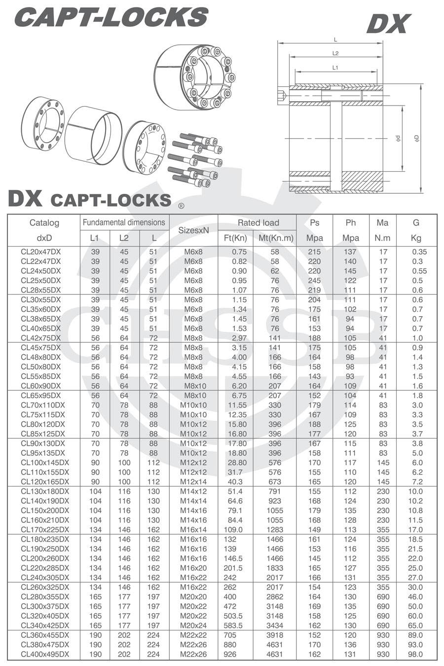 DX型脹套是D型脹套的改型,其尺寸系列相同,并且能夠做成更小的規(guī)格,同規(guī)格傳遞的扭矩和軸向力稍小于D型脹套。