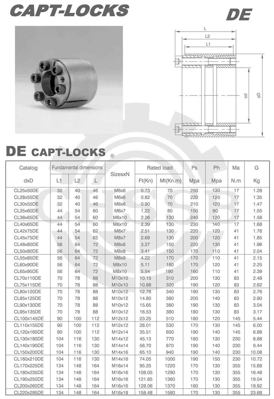 DE(Z12A)型脹套是D型脹套的改型,其尺寸系列相同,并且能夠做成更小的規(guī)格,同規(guī)格傳遞的扭矩和軸向力稍小于D型脹套。